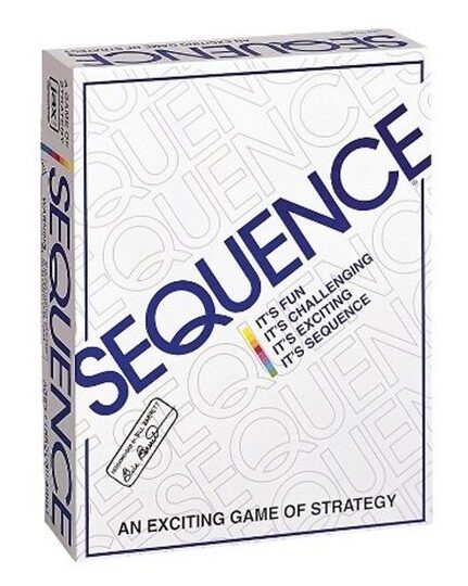 Sequence is a board and card game. The board shows all the cards (except for the Jacks) of two (2) standard 52-card decks, laid in a 10 x 10 pattern. The four corners are free spaces and count for all players equally.